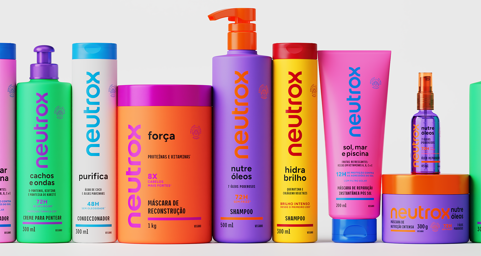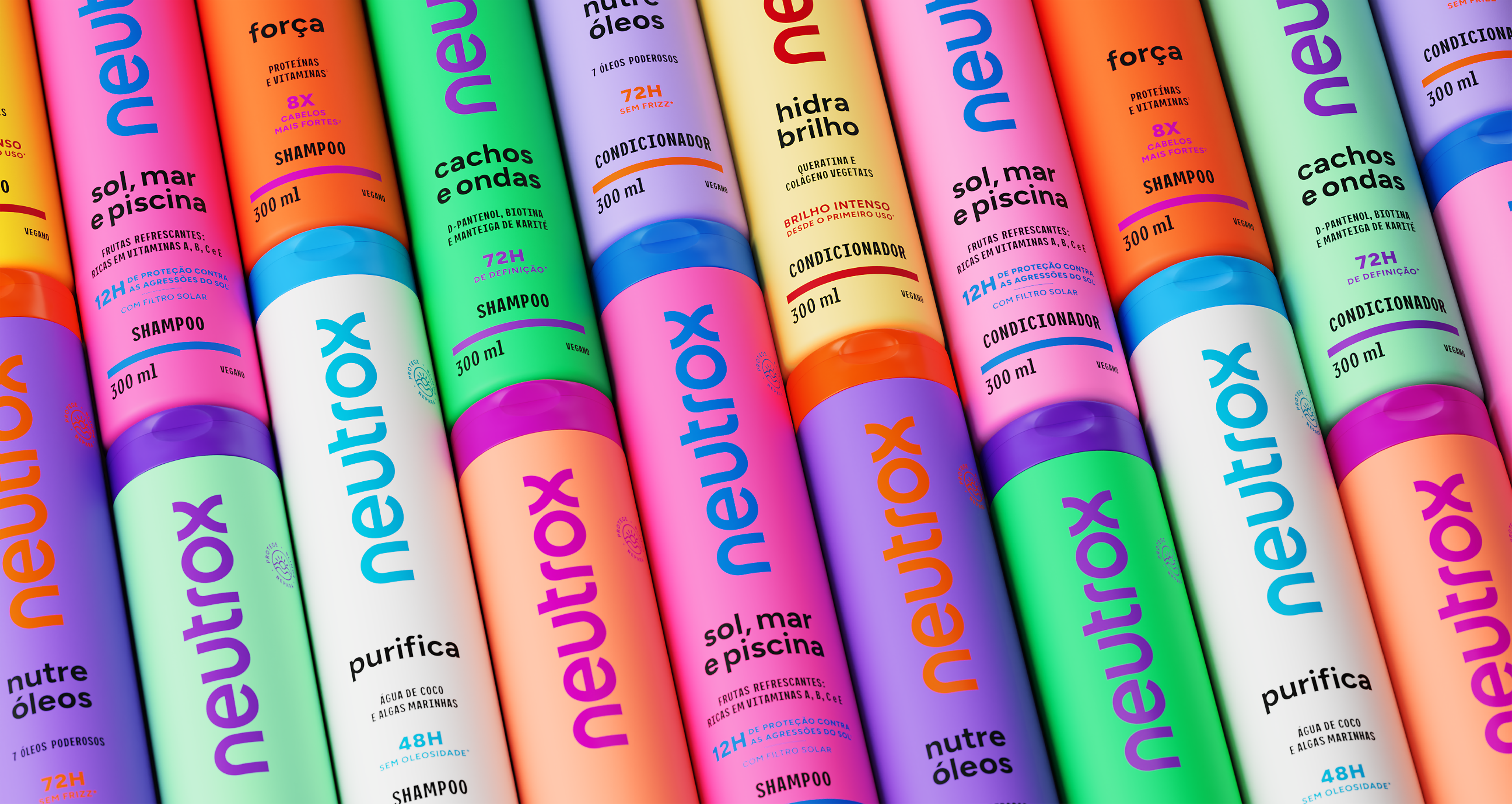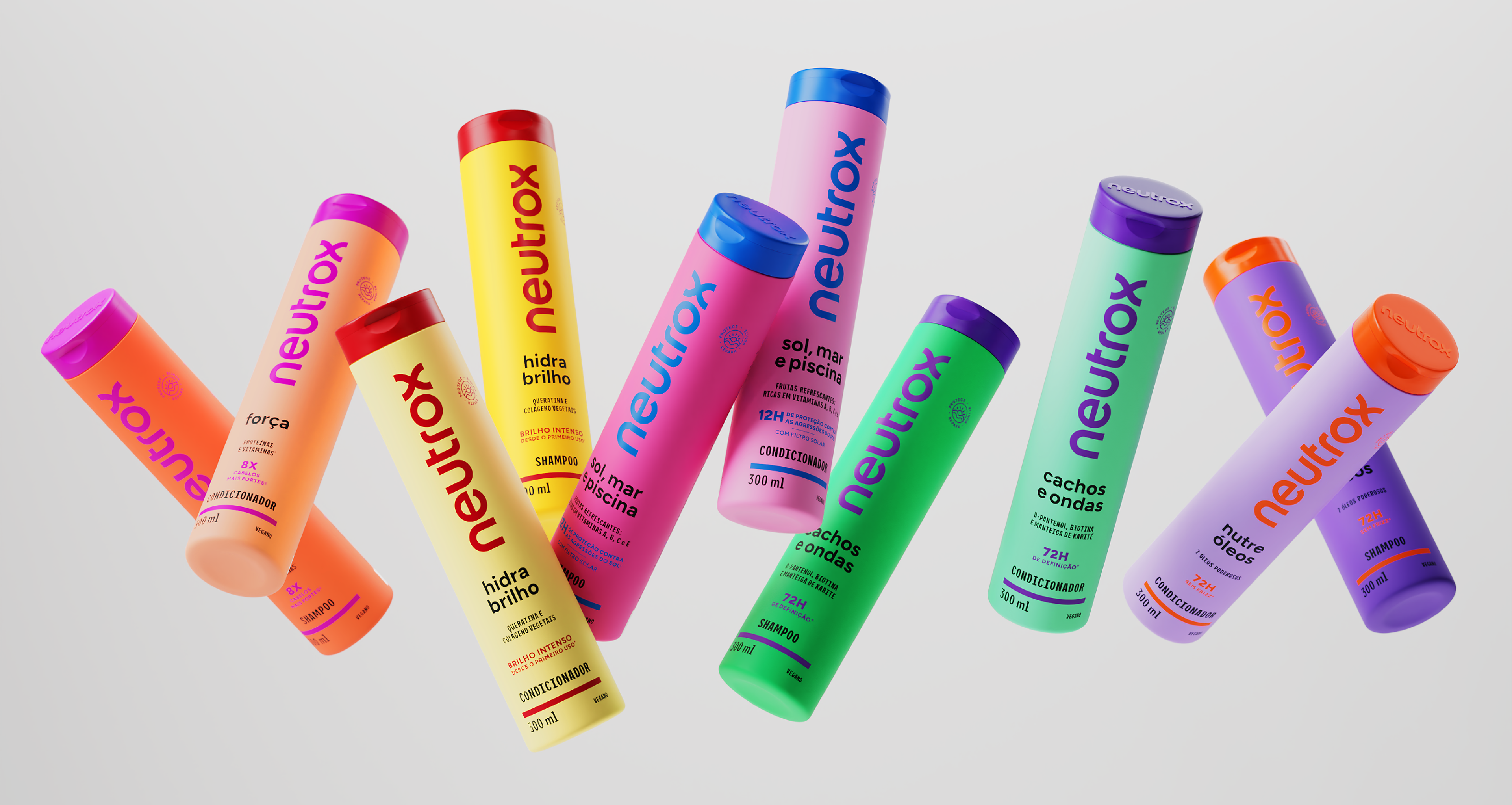 A Neutrox é uma das marcas mais icônicas do mercado brasileiro de cuidados capilares. Lançada no final dos anos 1970, ajudou a popularizar o condicionador no país e tornou-se parte da memória afetiva de gerações. Ao longo das décadas, passou por diversos redesenhos e expansões, chegando hoje a várias linhas com dezenas de embalagens. A Foresti Design foi convidada a redesenhar a marca, a identidade e todo o sistema de embalagens, reorganizando o portfólio e criando uma base atual capaz de diferenciar os produtos no ponto de venda e reposicionar a Neutrox como uma marca mais desejada.