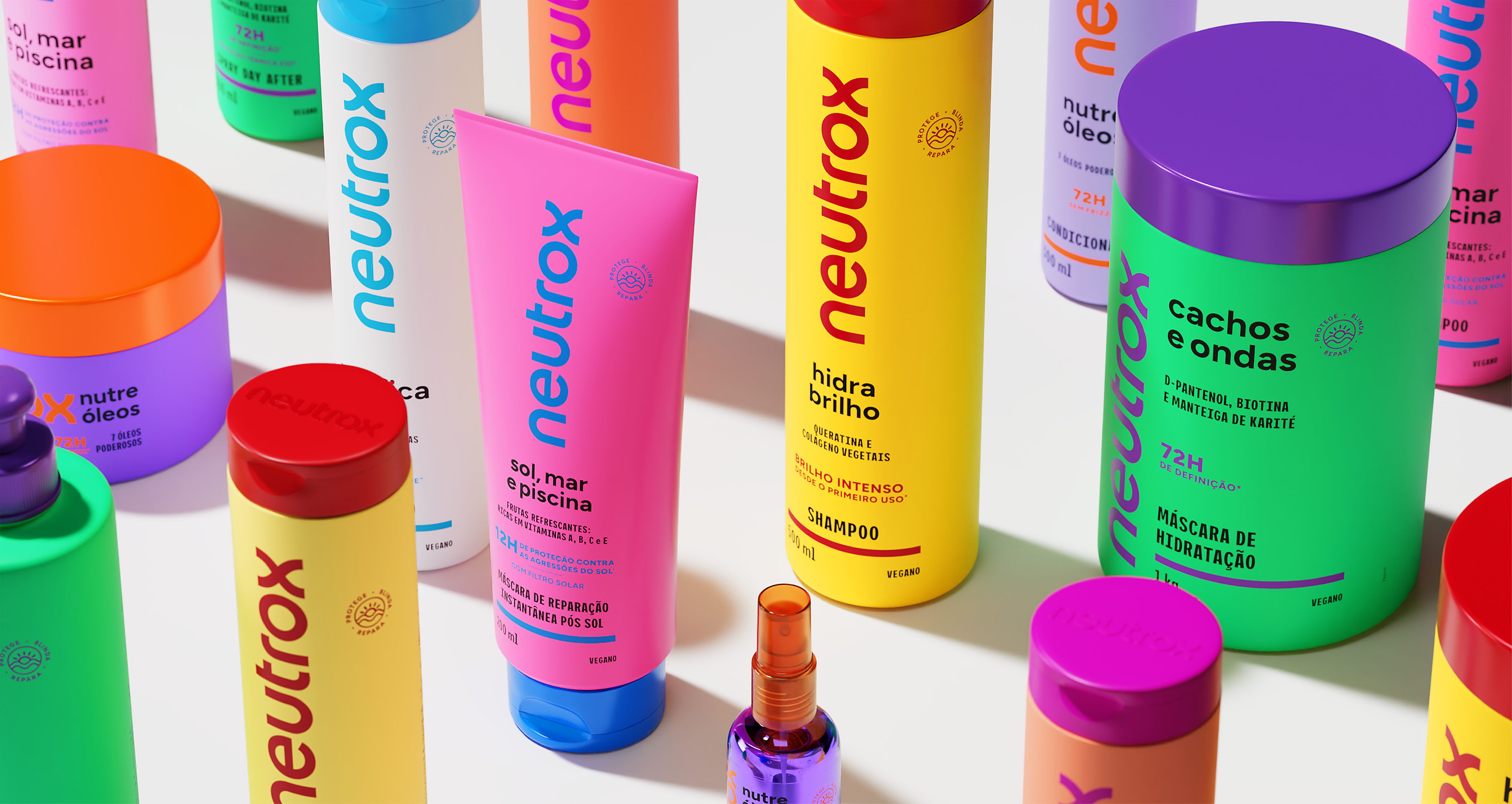Neutrox is one of the most iconic brands in the Brazilian hair care market. Launched in the late 1970s, it helped popularize the conditioner in the country and became part of the emotional memory of generations. Over the decades, it has undergone several redesigns and expansions, today reaching several lines with dozens of packages. Foresti Design was invited to redesign the brand, the identity and the entire packaging system, reorganizing the portfolio and creating a current base capable of differentiating the products at the point of sale and repositioning Neutrox as a more desired brand.